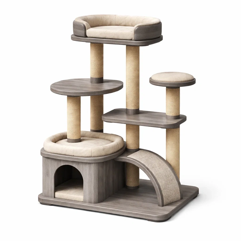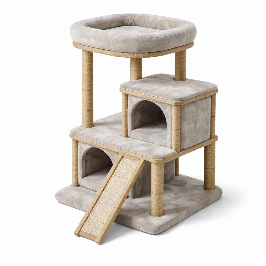 Tiragraffi per gatti beige in bamb羅 e tessuto multilivello