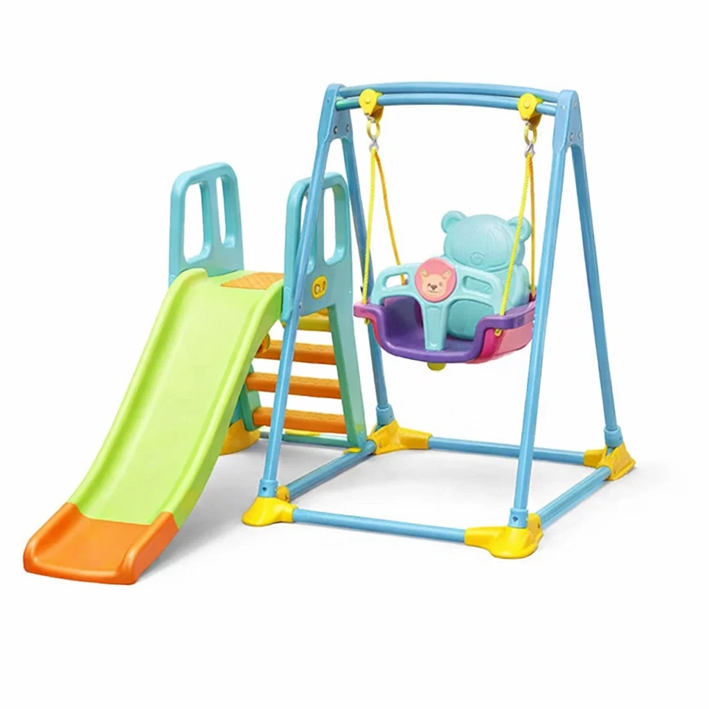 Set composto da altalena e scivolo realizzati in plastica polipropilene resistente.