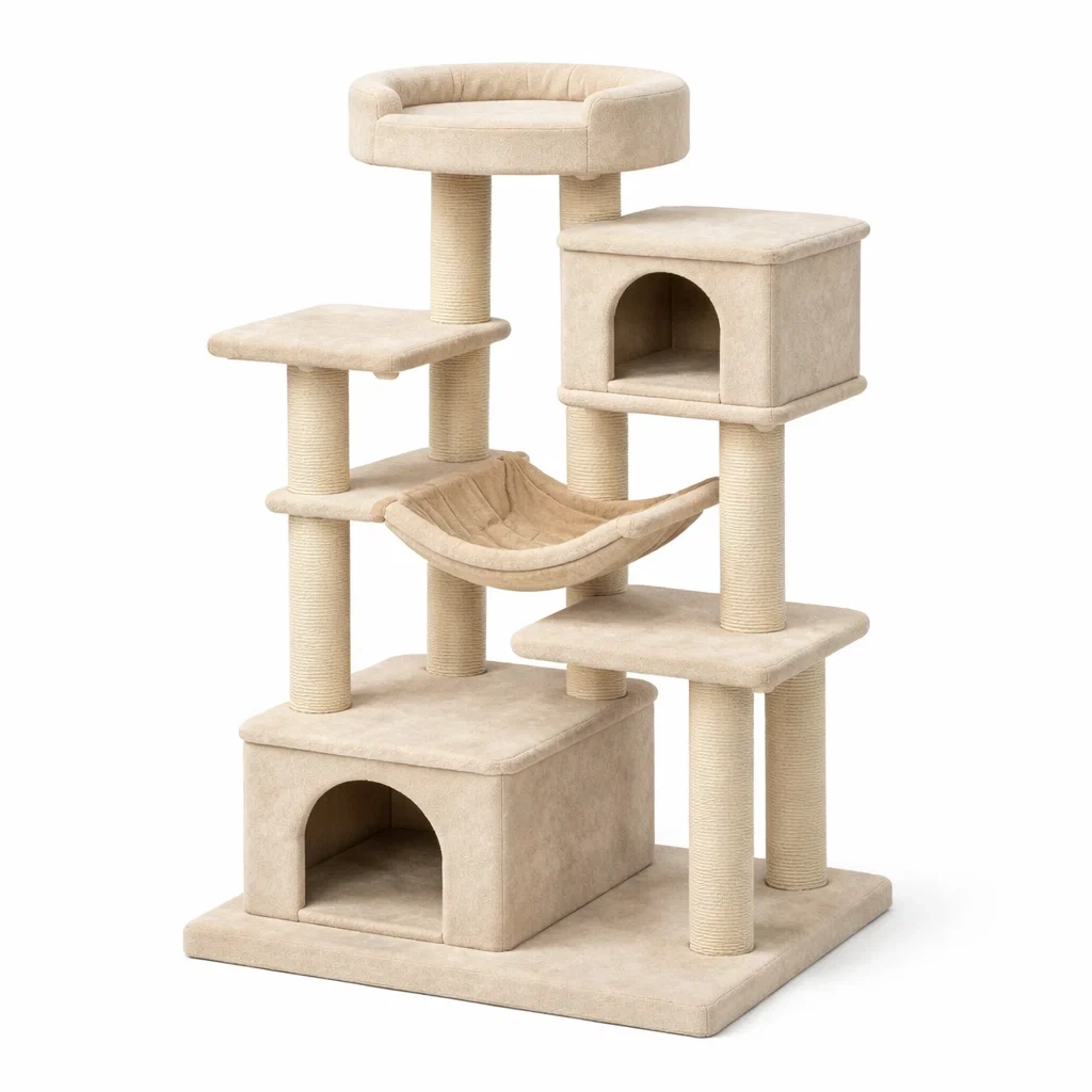 Tiragraffi per gatti in legno compensato e sisal naturale beige