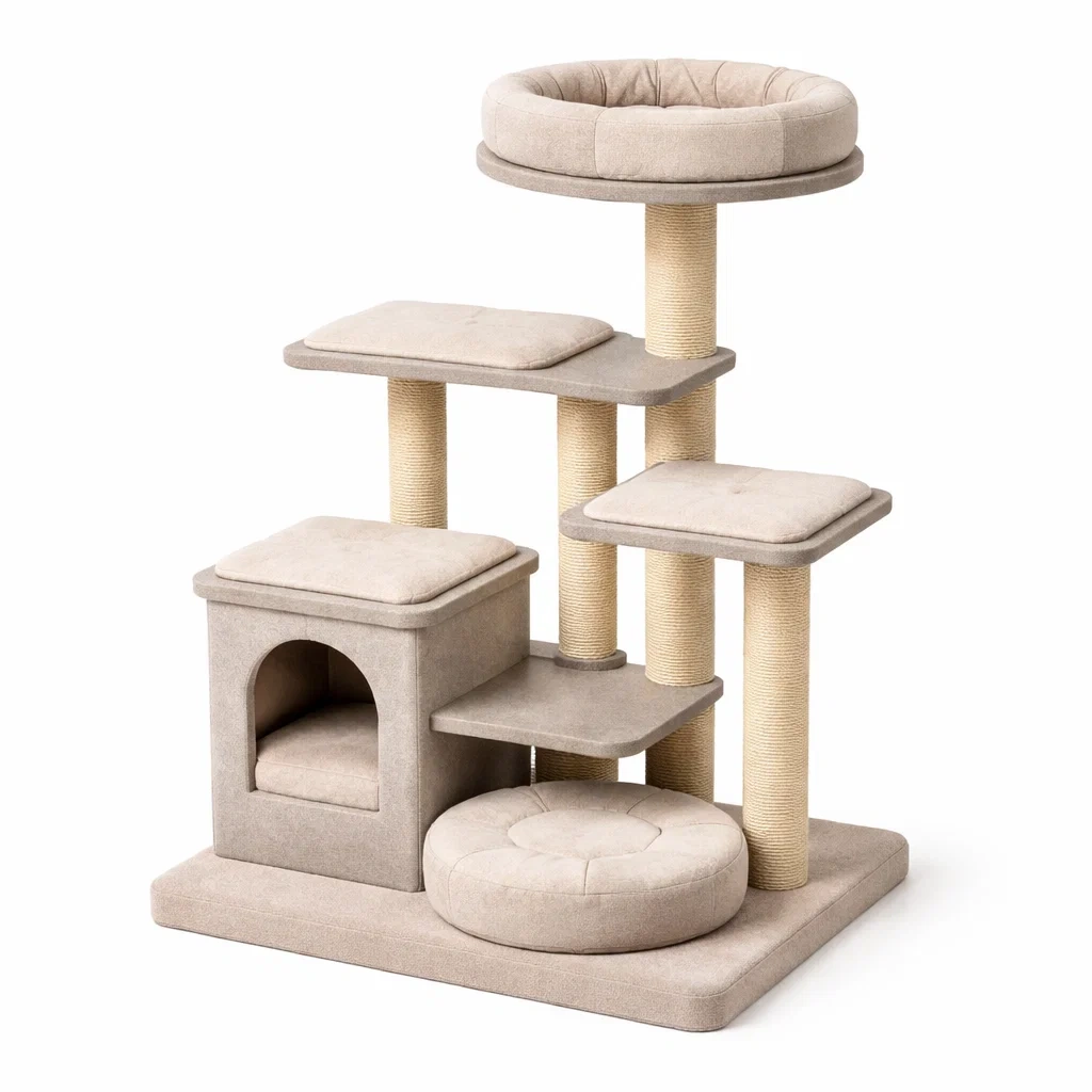 - Componenti: colonne in sisal, piattaforme, cuccia imbottita