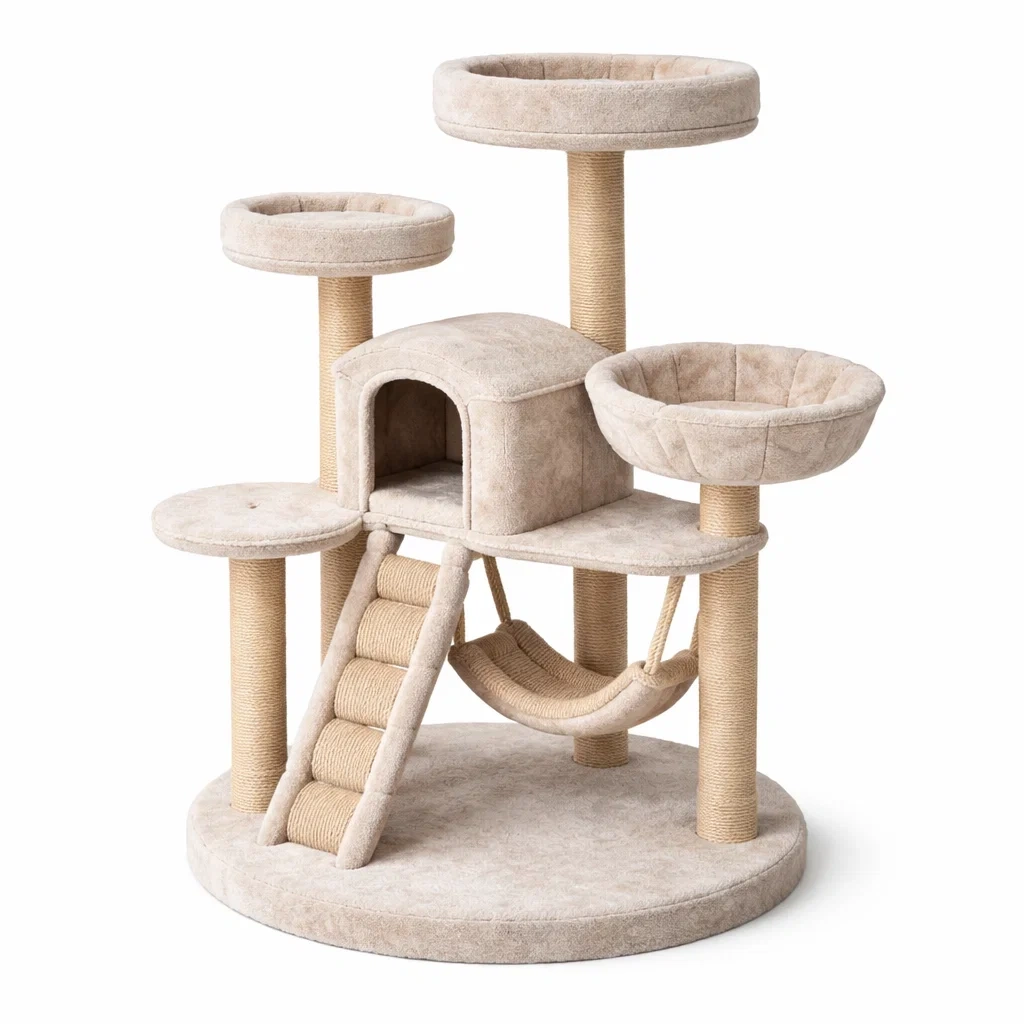 Tiragraffi per gatti in pile e sisal beige